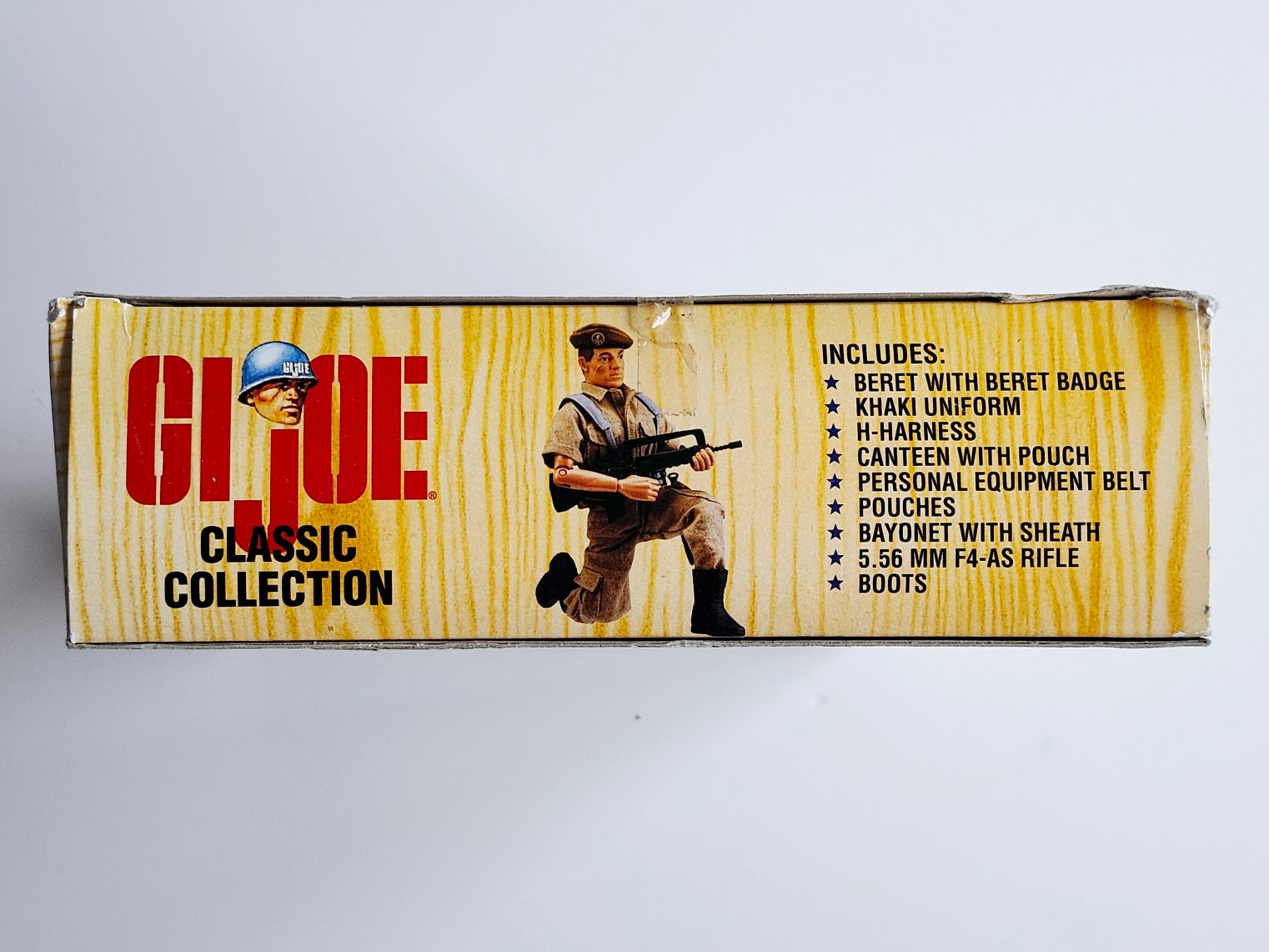 This Classic Collection French Foreign Legion set from 1997 includes a 12-inch G.I. Joe action figure, a beret with a beret badge, a khaki uniform, an H-harness, a canteen with a pouch, a personal equipment belt, pouches, a bayonet with a sheath, a 5.56 mm F4-AS rifle, a boots.