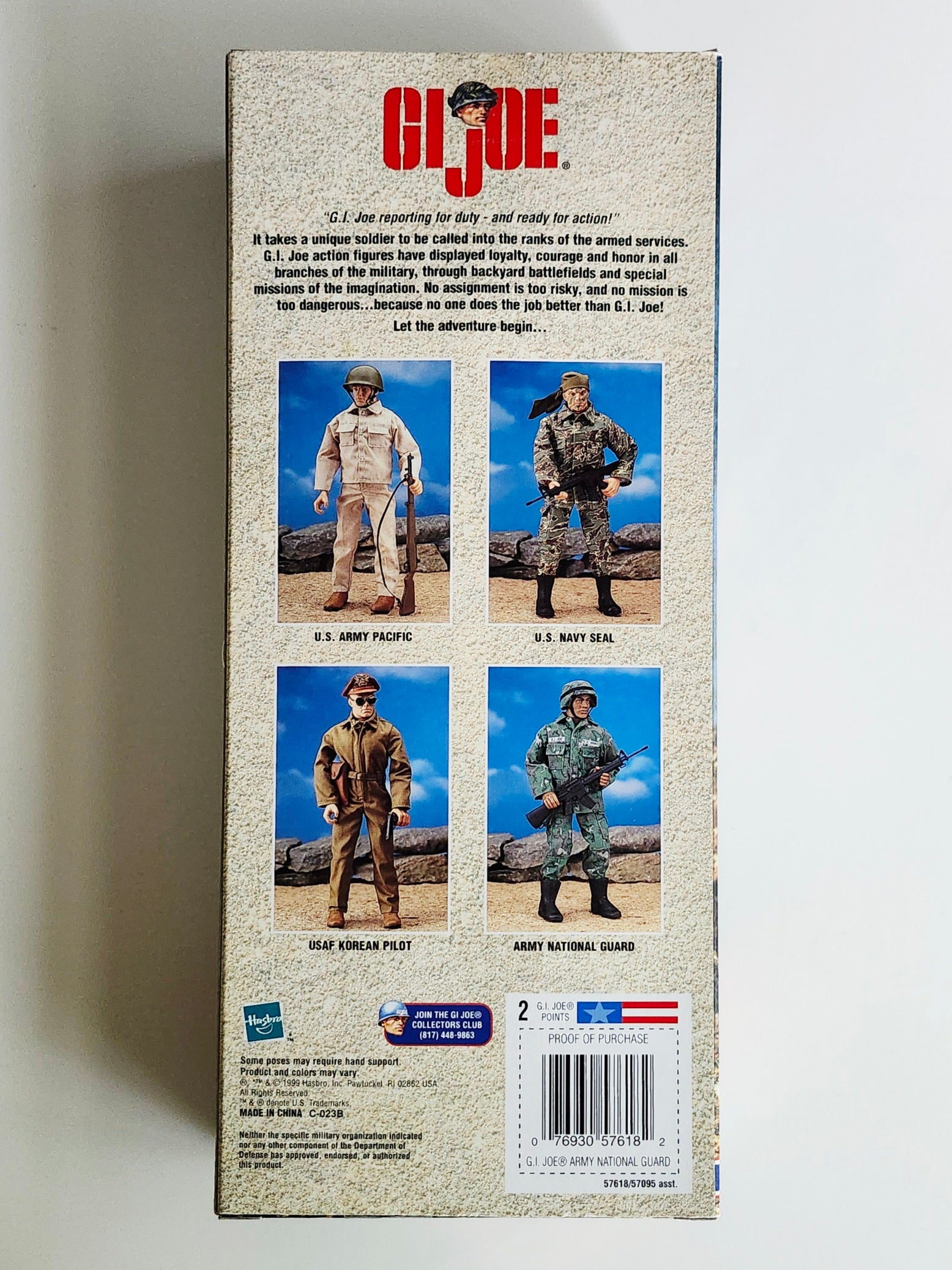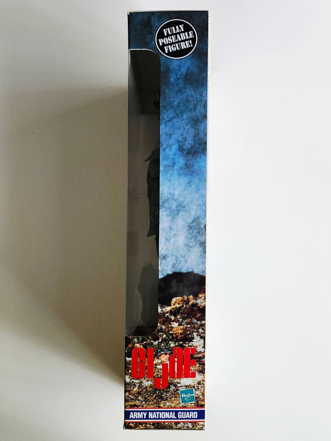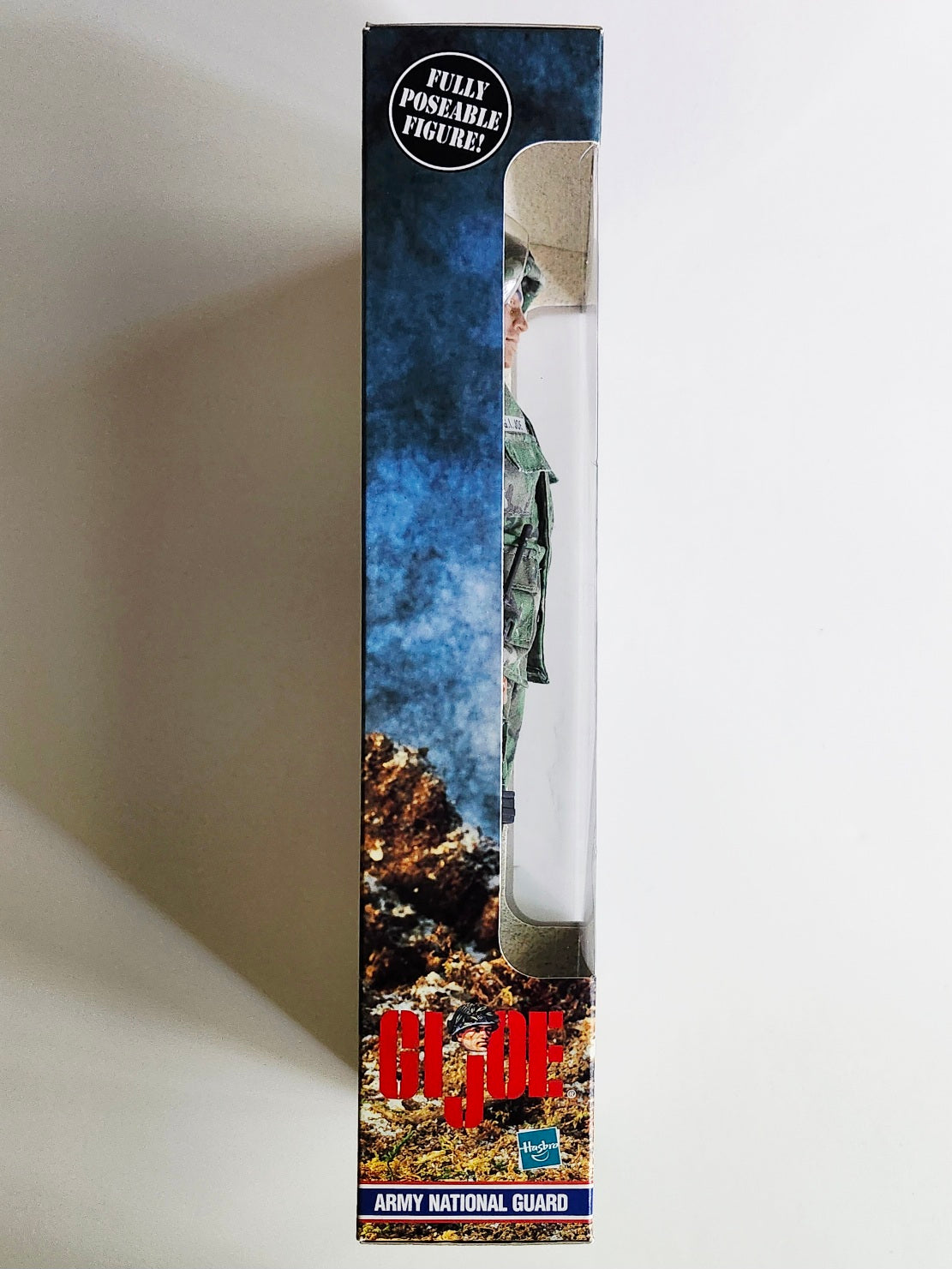 The 12-inch scale G.I. Joe Army National Guard figure comes with accessories, including an authentic uniform, a rifle, a helmet, and boots.