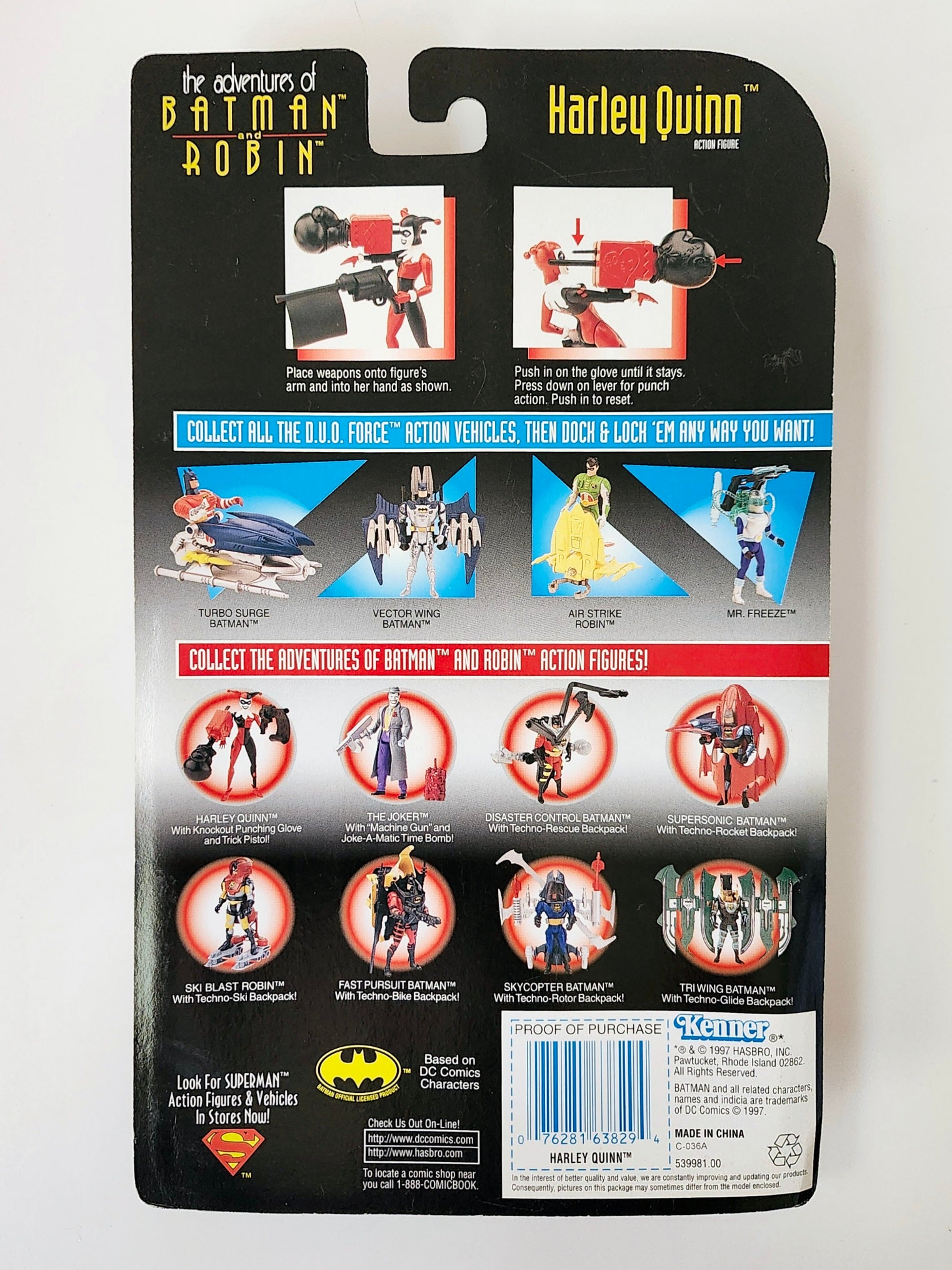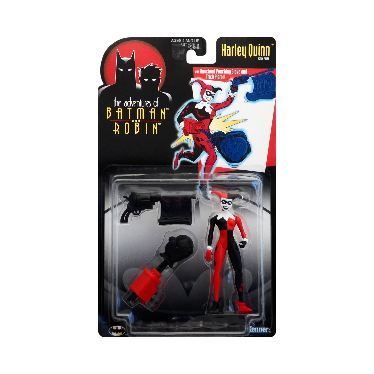 This 1997 Harley Quinn figure from The New Adventures of Batman and Robin animated series comes with a trick pistol and knockout punching glove.