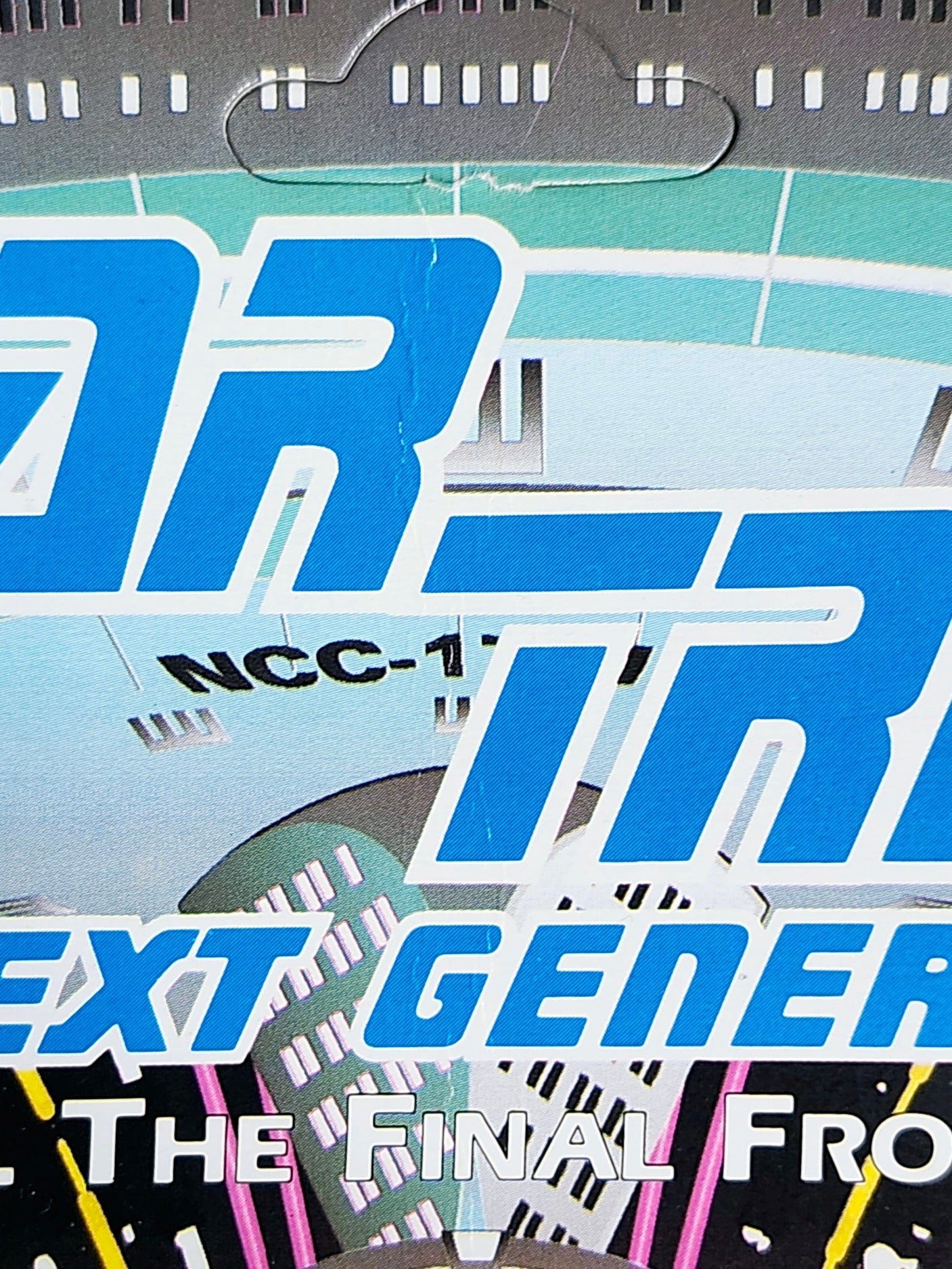This Lieutenant Commander Geordi La Forge in Dress Uniform action figure comes with a type II hand phaser, a desktop viewer, a tricorder, and a plaque of medals. This figure includes a Skybox Playmates collector card.
