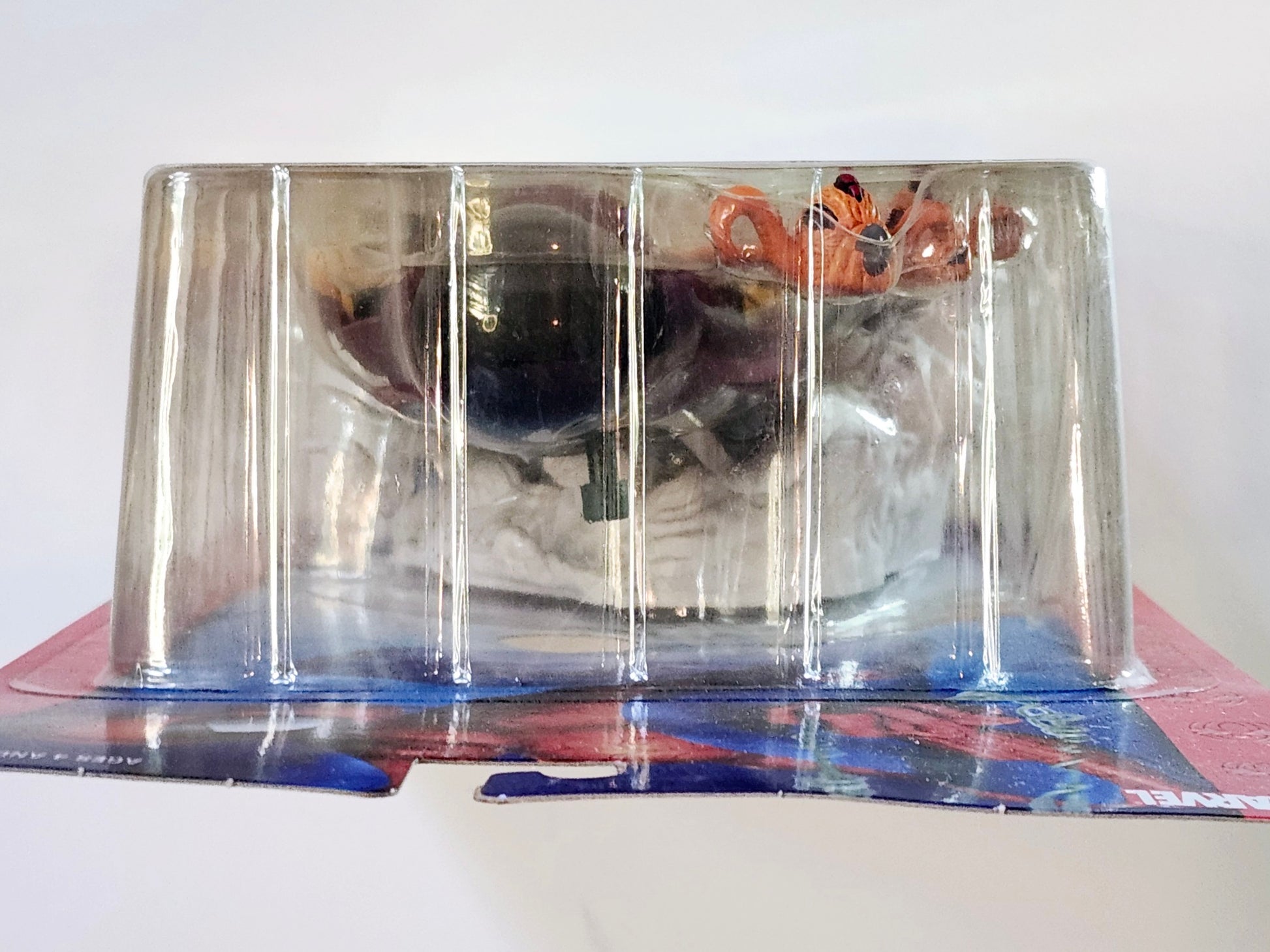 This Mysterio figure from 2005 is extremely detailed and poseable and comes with missile launching cloud car with two missiles. When the button on the figure's back is pressed, the helmet lights up, showing a new face.