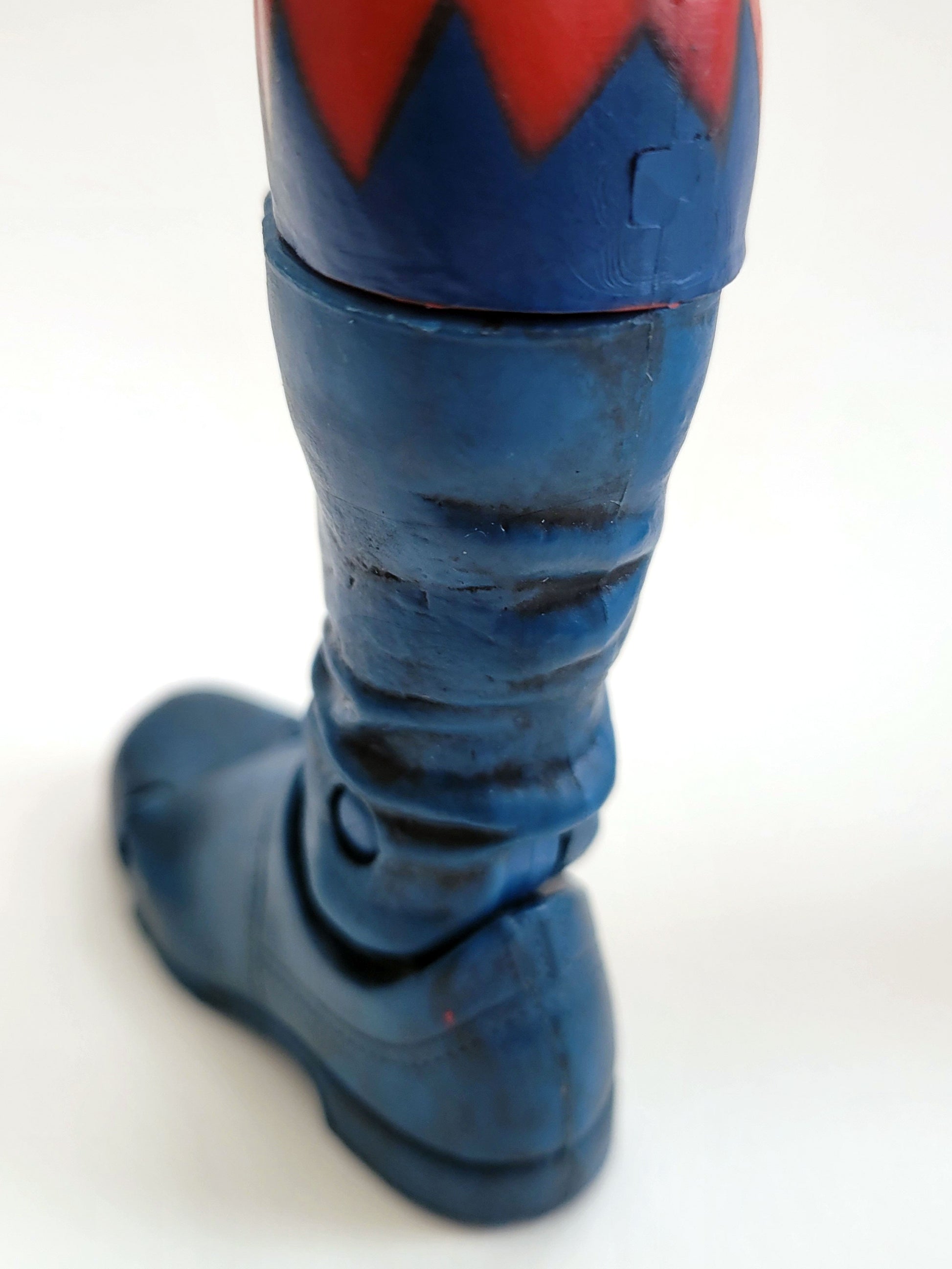 This figure is in very good condition with slight paint flaws. It can stand on its own, though a figure stand support is recommended because the ab crunch is somewhat wobbly on these figures.