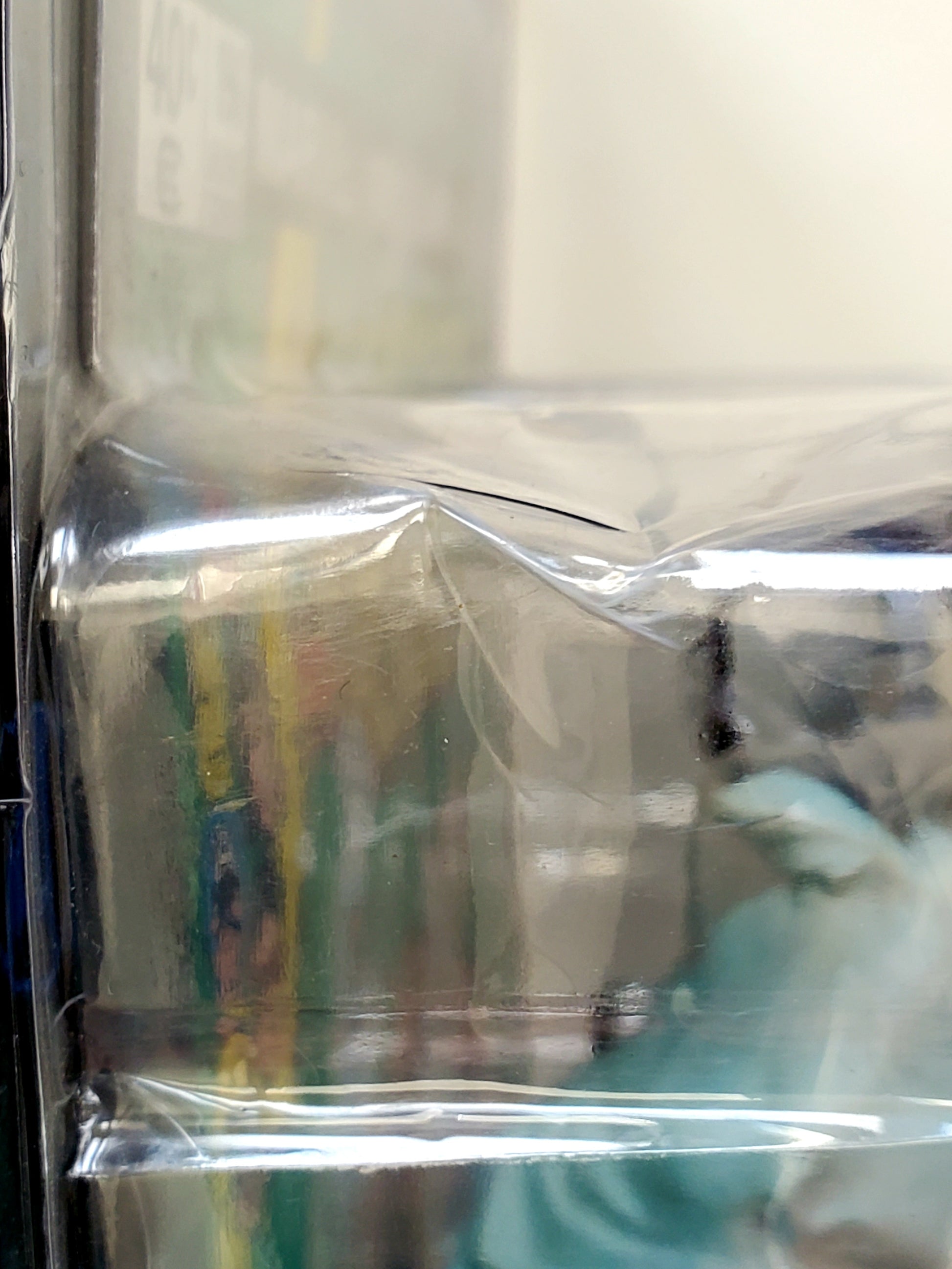 This figure is new in an otherwise very good package that has a couple of small dents on the side and a short crease near the back edge. There are three small flecks of orange paint on the hood which belong on the reverse side of the cape.