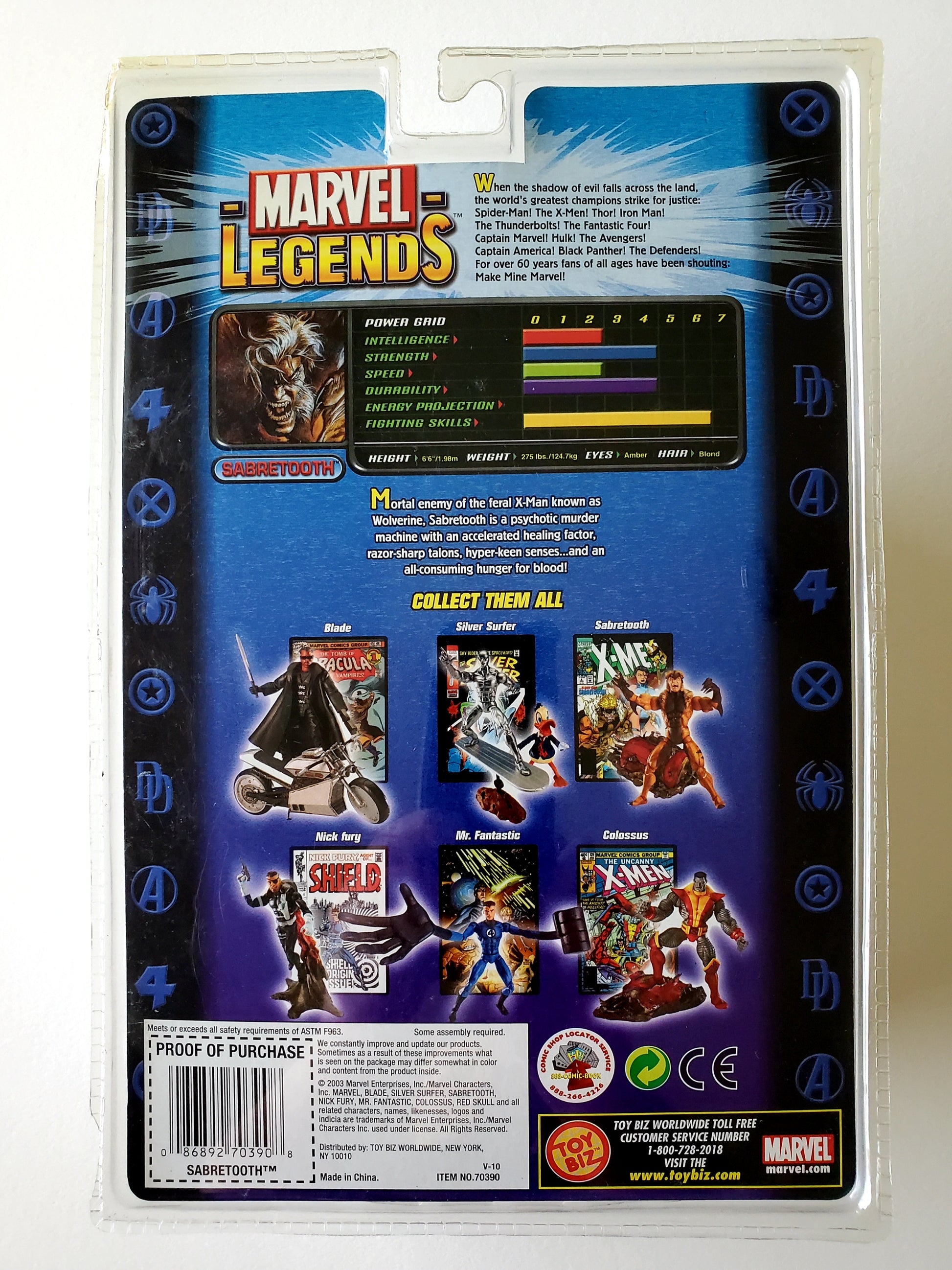 The Marvel Legends Sabretooth action figure is super-poseable with thirty-eight points of articulation. The figure also includes a bonus 32-page comic book and a wall mountable display stand.
