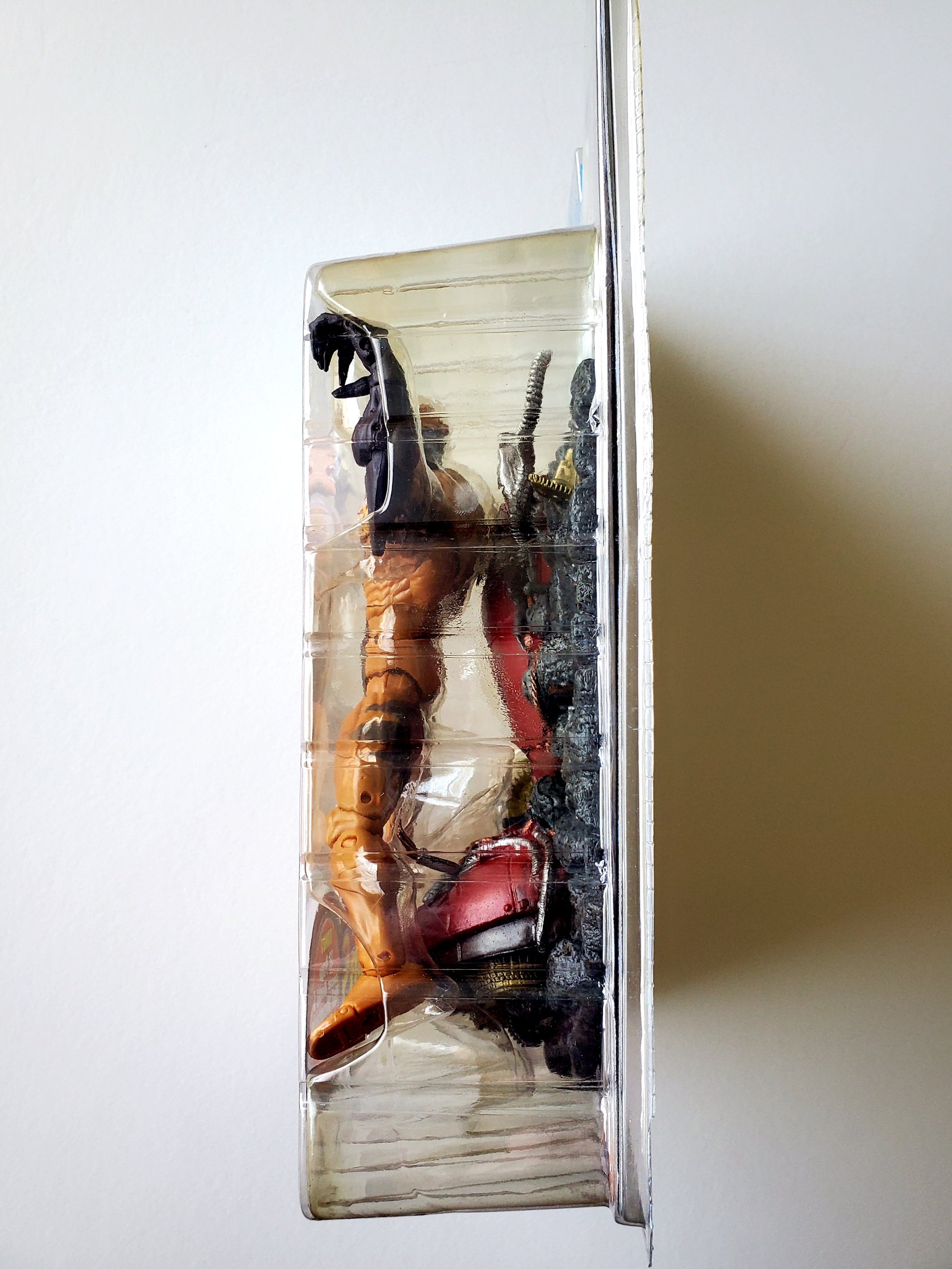 This figure is new inside a very good package with some minor crinkling on the side of the blister (though it is mostly popped out). The blister bubble tray also has some yellow tint due to age.