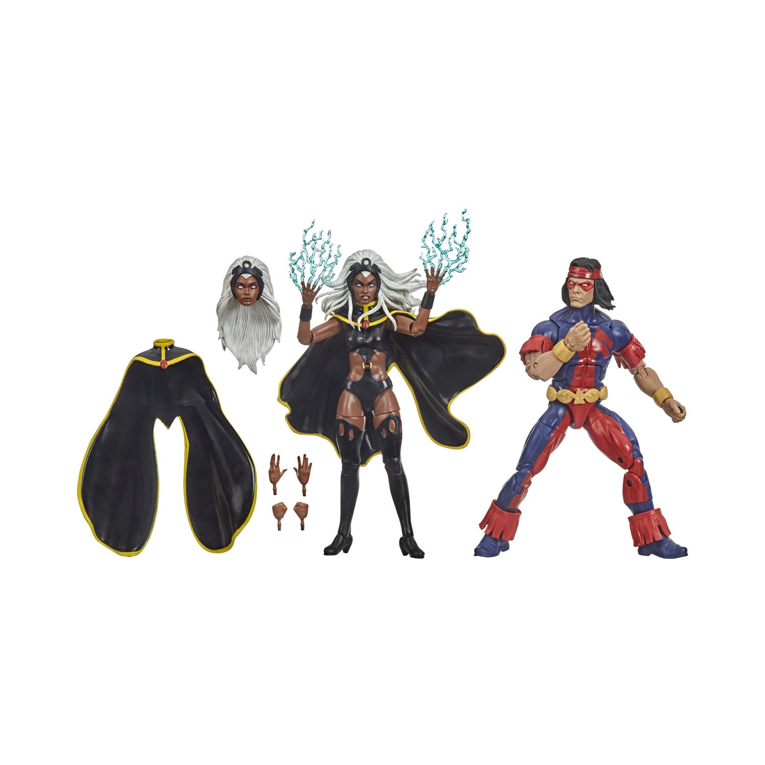 This Marvel Legends Storm and Thunderbird set includes two super-poseable figures inspired by Marvel's 1975 Giant-Sized X-Men comic. The set comes with an alternate head, an alternate cape, and two alternate sets of hands for Storm.