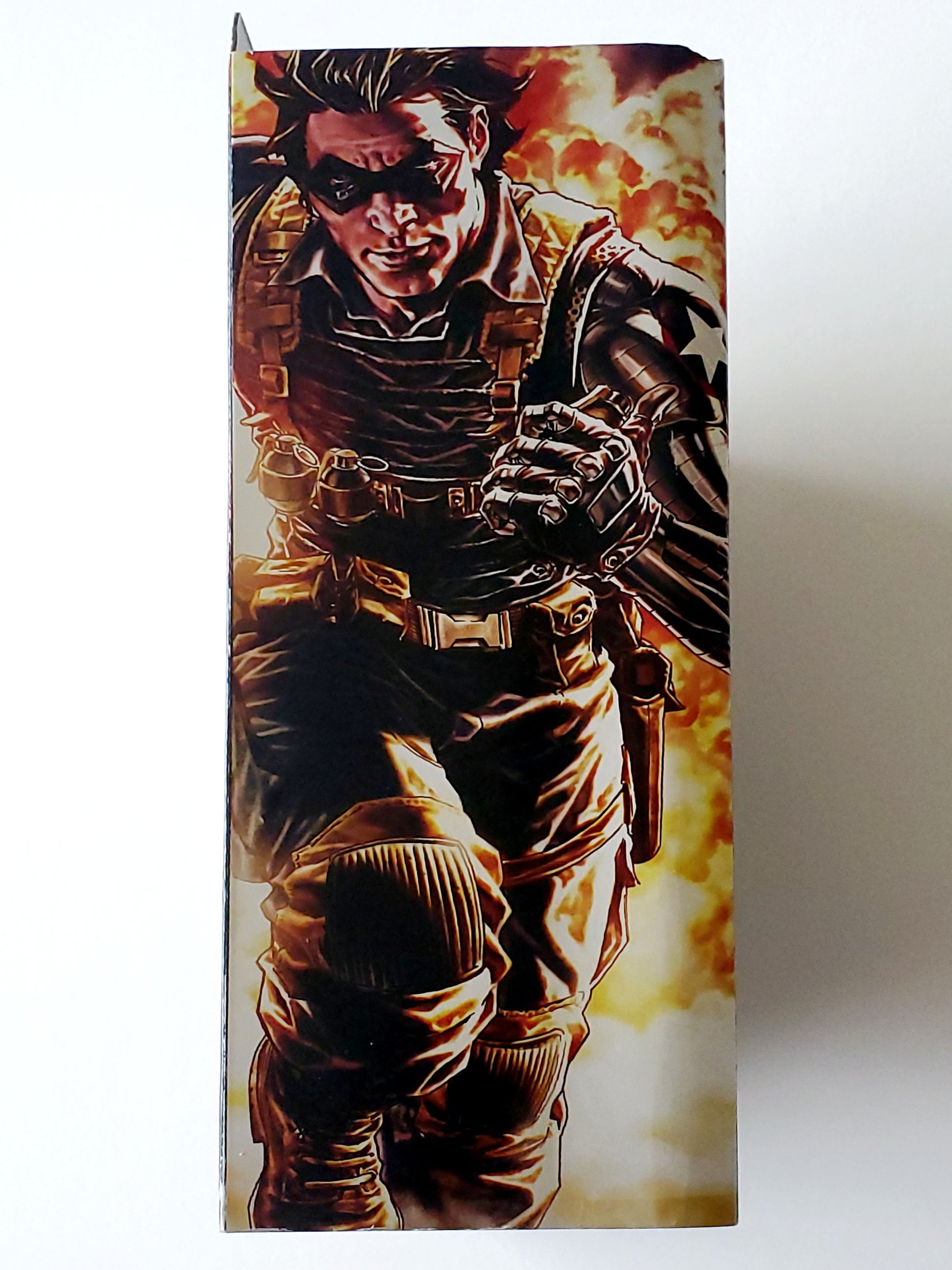 This highly-detailed 7-inch scale figure of the Winter Soldier from the Disney Store is fully poseable. This figure comes with a pistol, a machine gun, a sniper rifle, a crate, and a shattered window display base.