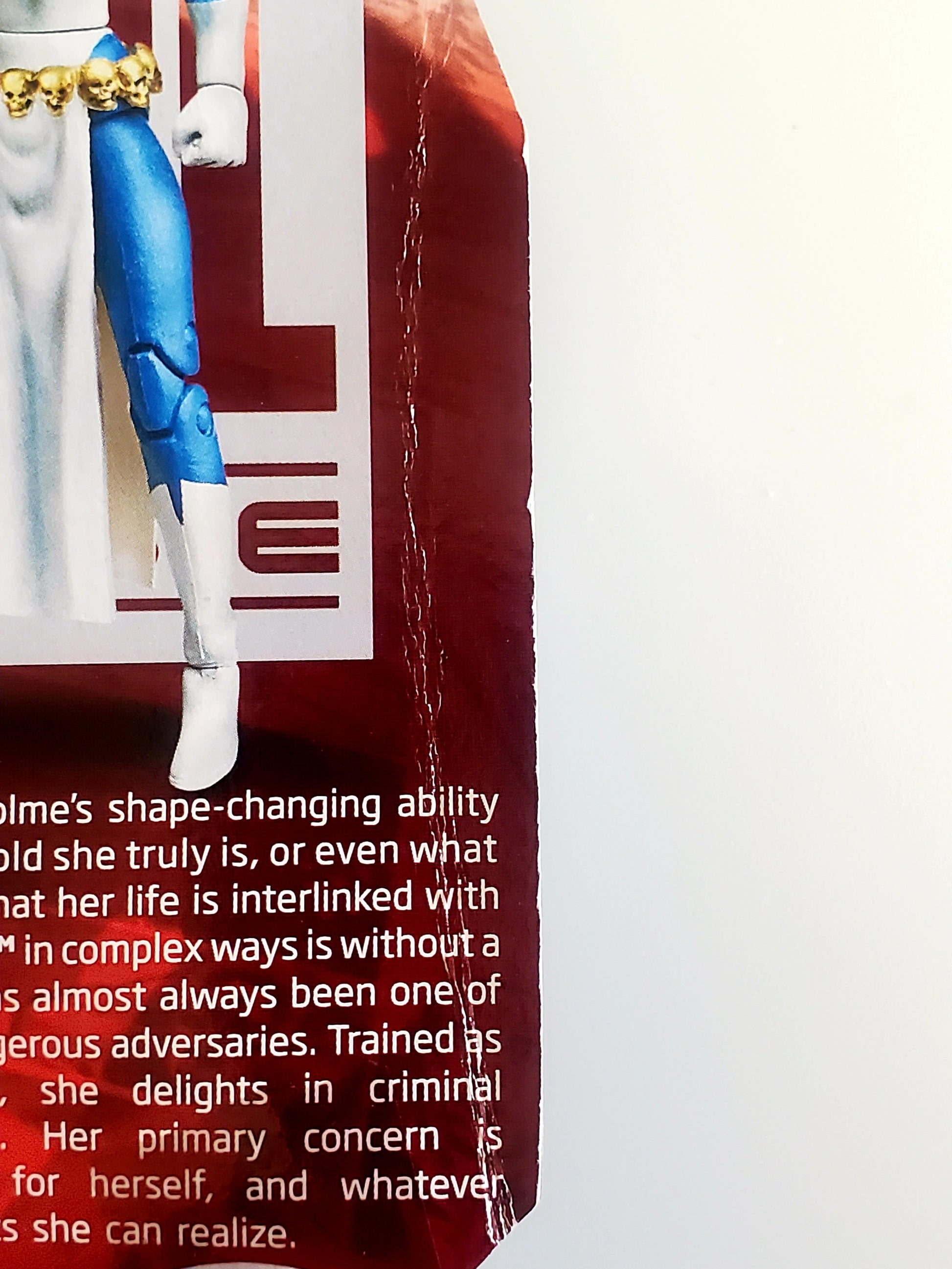 This figure is new inside an otherwise nice package that has a crease along the left edge of the card.