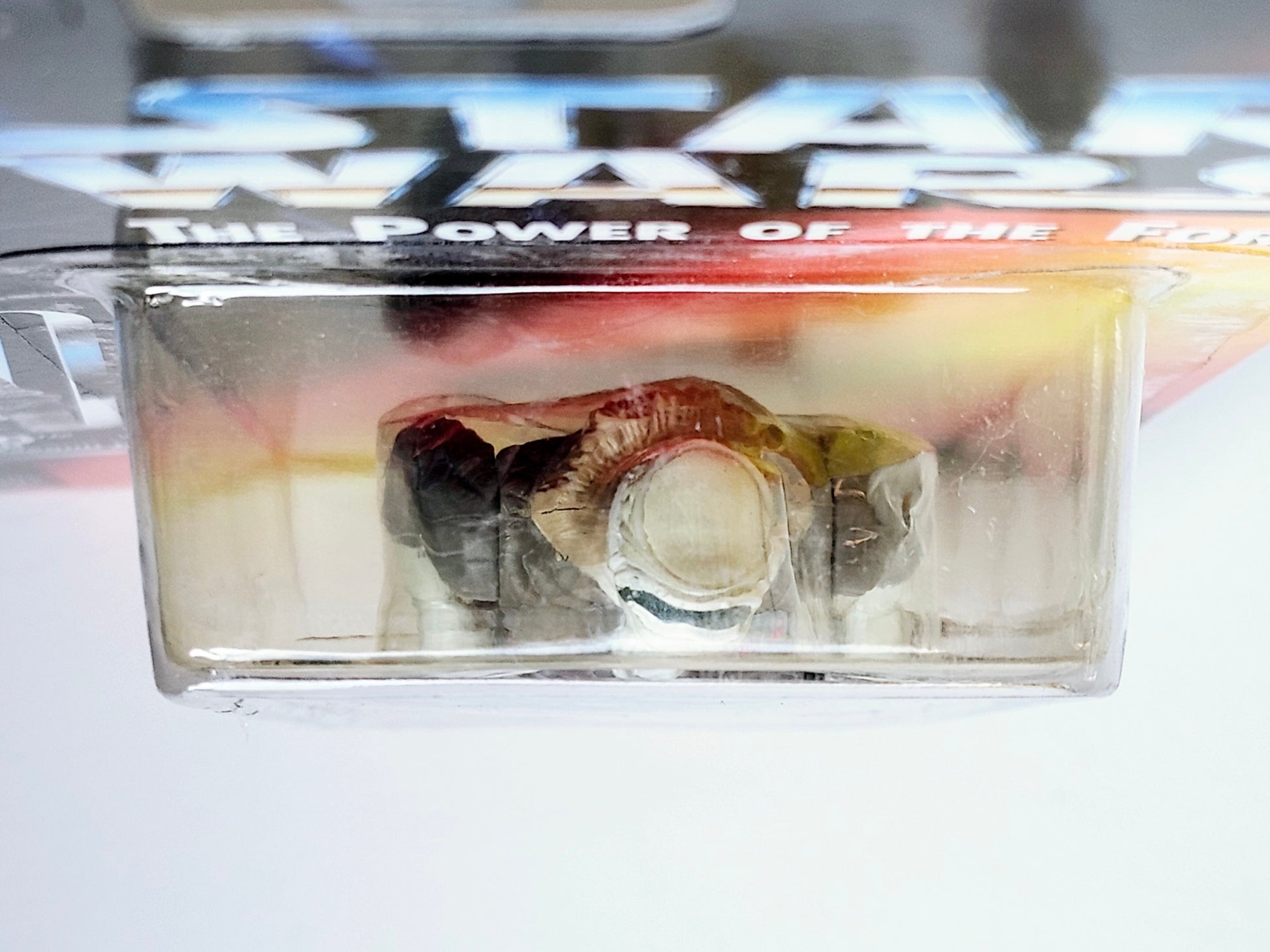 This figure of Han Solo wearing Hoth Gear was issued on a red card for the Power of the Force series. Included are a blaster pistol and an assault rifle.