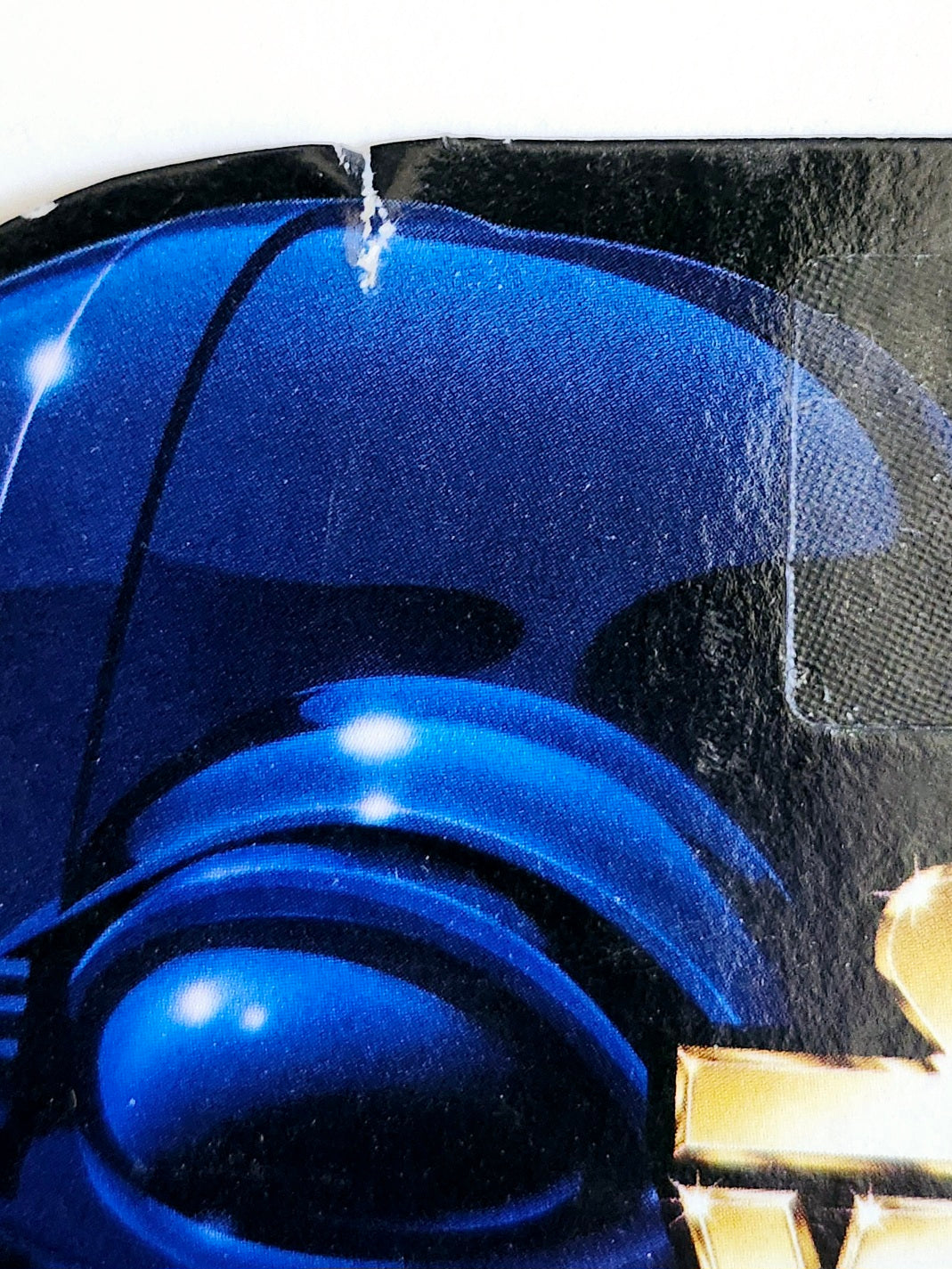This is the green carded figure with a hologram sticker. The figure is new in a good package with a minor tear and creases.