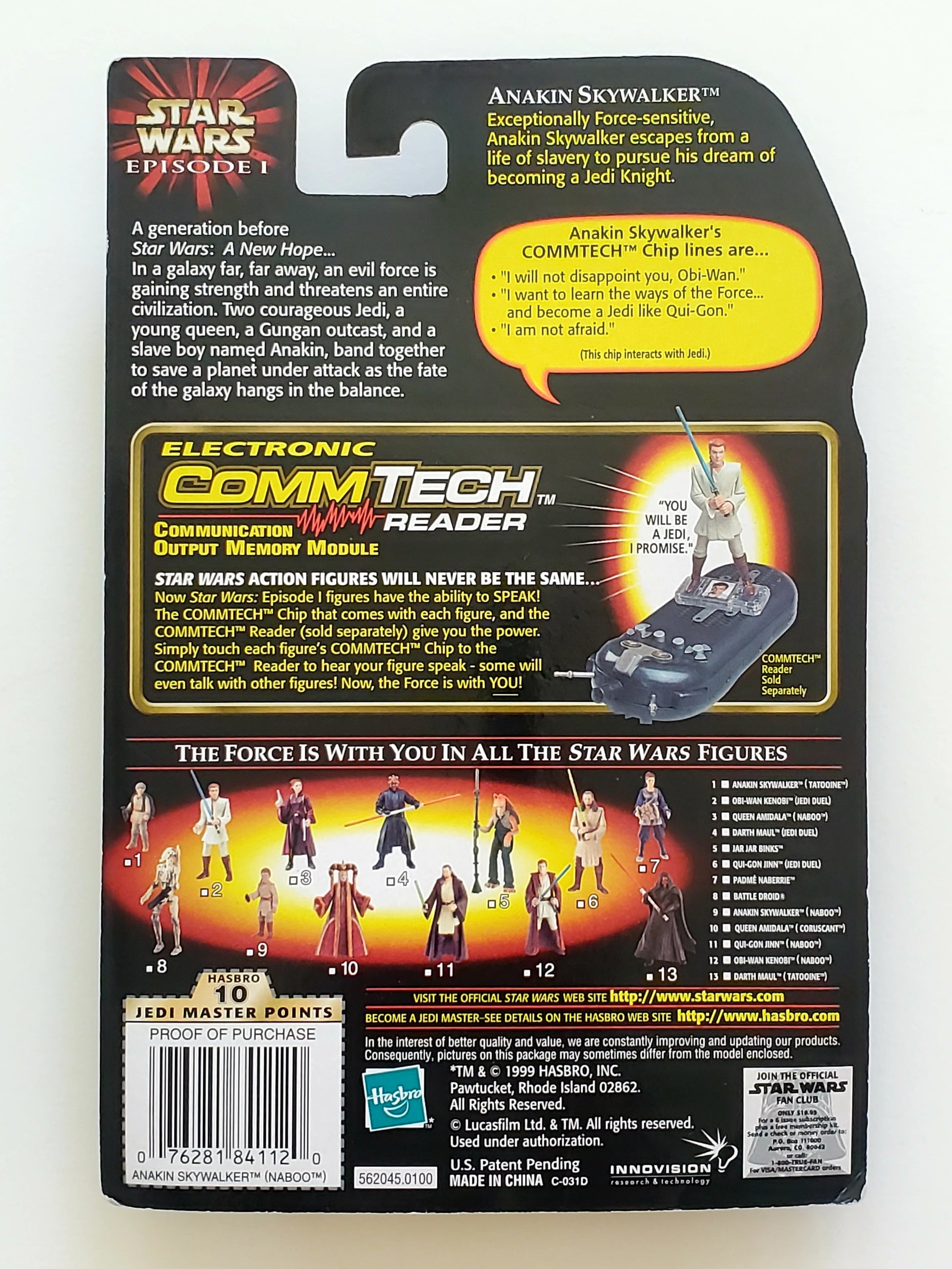 This figure of Anakin Skywalker (Naboo) from Star Wars: Episode 1 comes with a comlink unit accessory and a CommTech chip.