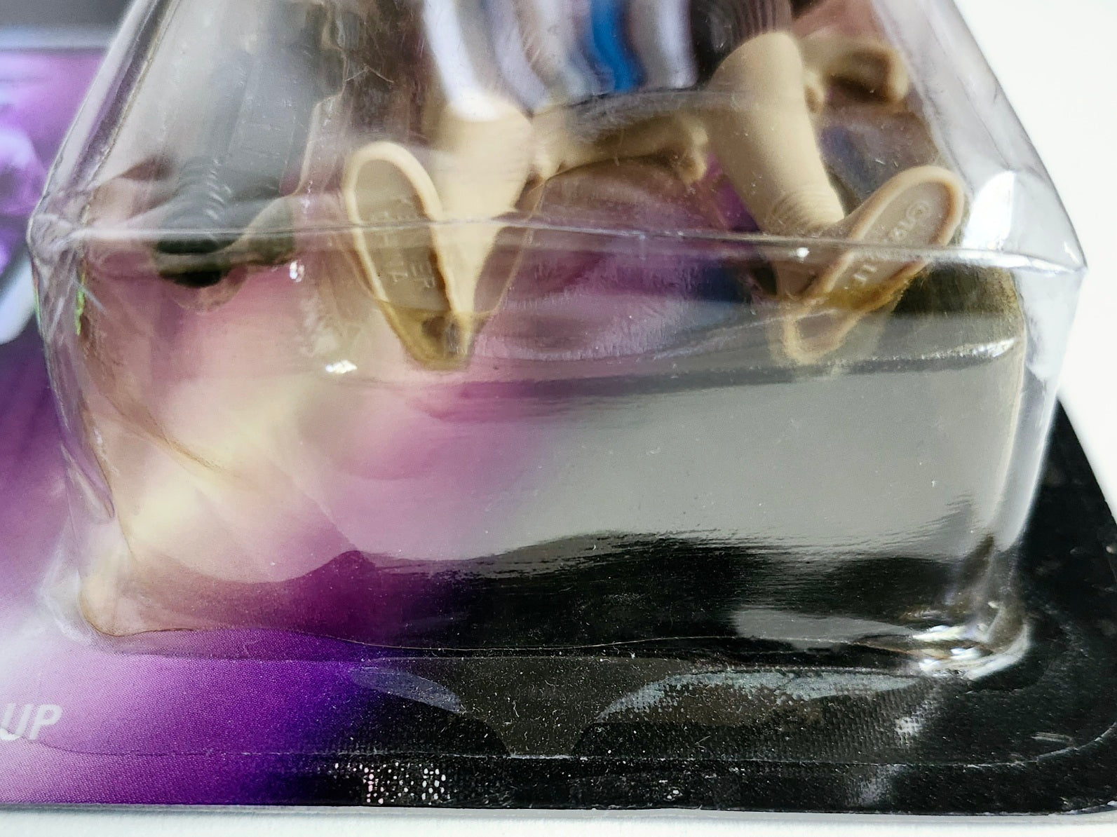 This figure is new in a package that has creases and dents on the blister bubble. The blister tray is also tinted yellow due to age.