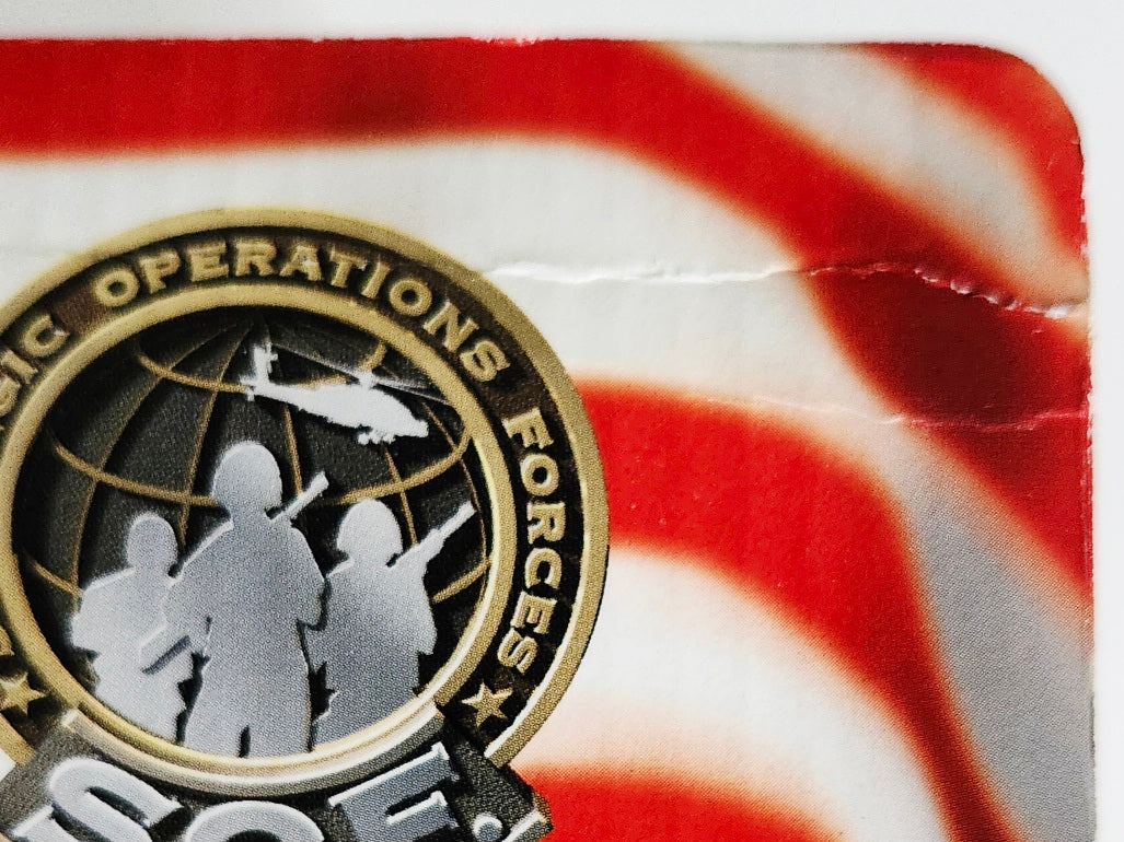 This rare 12-inch G.I. Joe figure set was produced by Hasbro in 2003. This set comes with sunglasses, a cap, a sweater, pants, a web belt, a holster, an AK47 machine gun with a clip, a knife with a sheath, a pistol with a clip, an M16 rifle with a grenade launcher and a clip, and grenades.