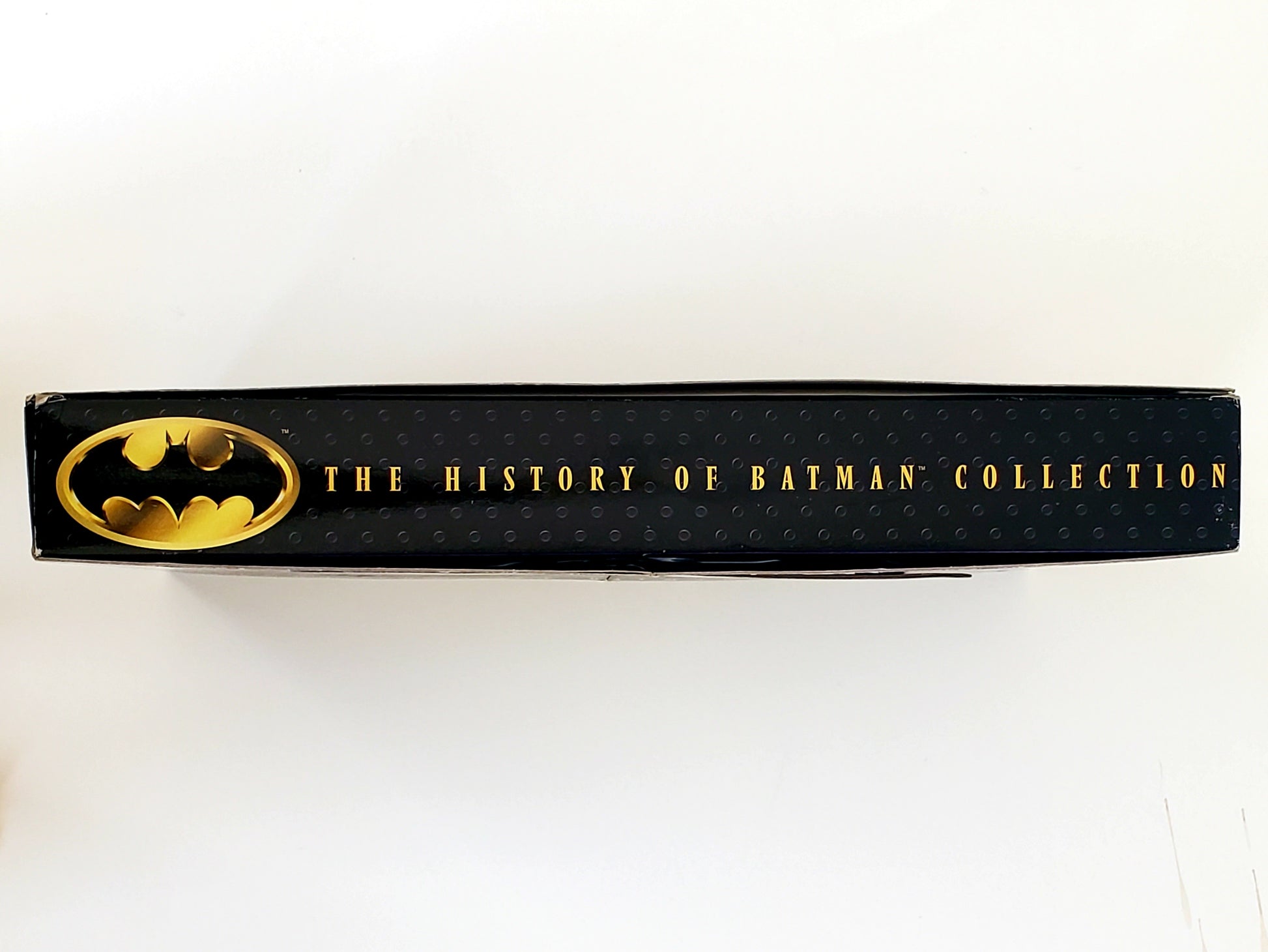 Made by Kenner exclusively for FAO Schwarz, the "History of Batman" set features a fold-out cover and three Batman figures with costumes from three different eras - the 1940s, 1970s and 1990s. Each era includes a 12-inch articulated figure with fabric costume and a reproduction of a comic cover. A hologram card is also included in this detailed collector set.