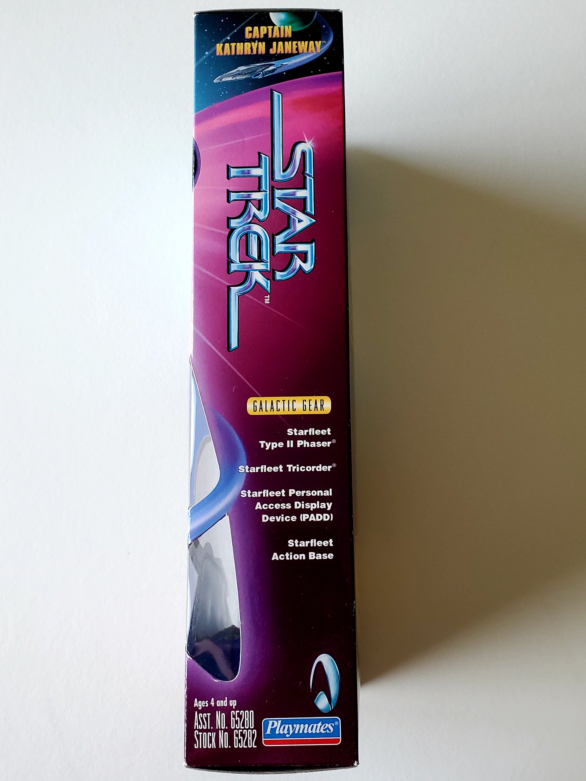 This 9-inch figure of Captain Janeway from the Voyager televisions series includes an authentic costume with Starfleet gear.