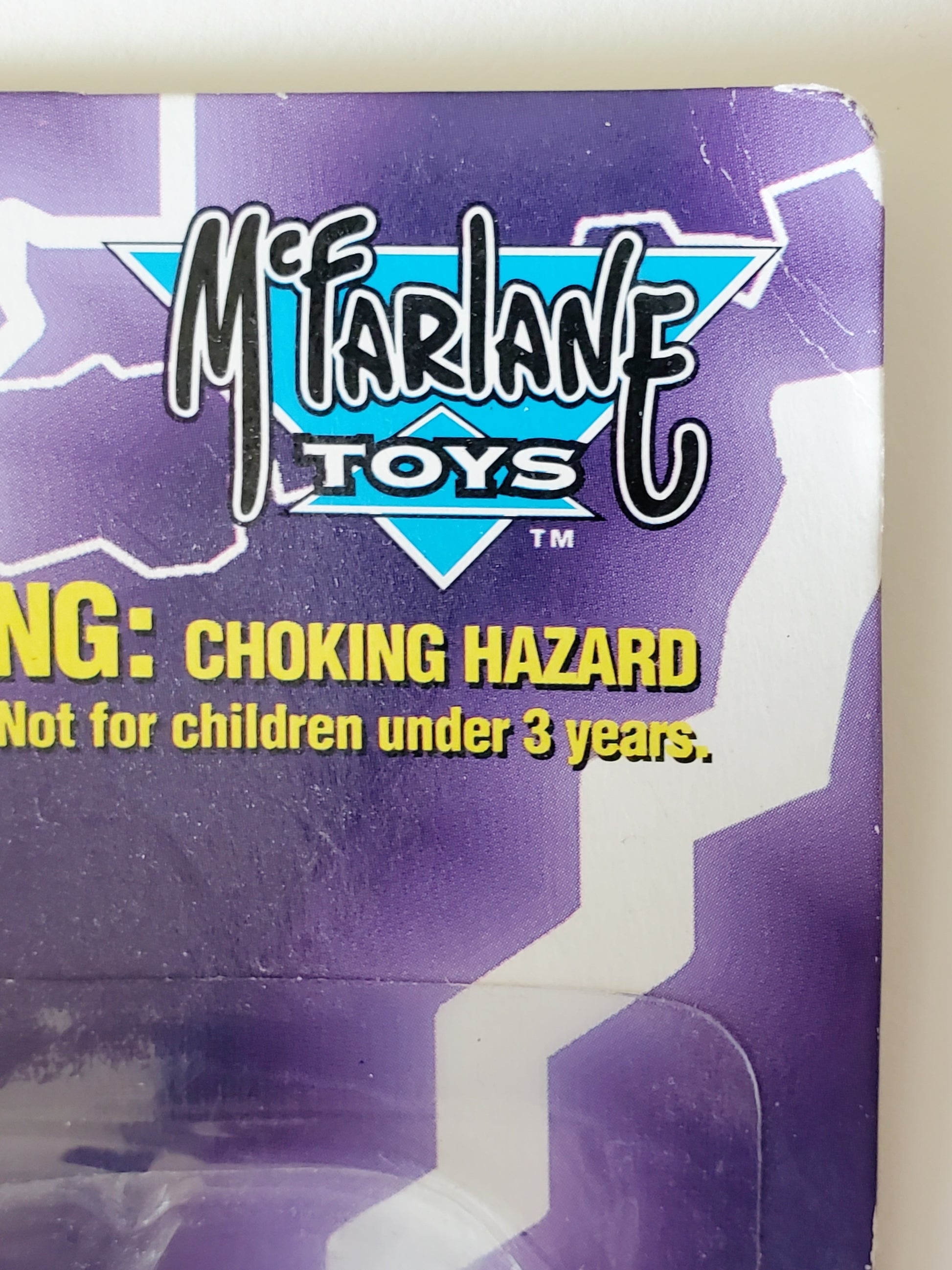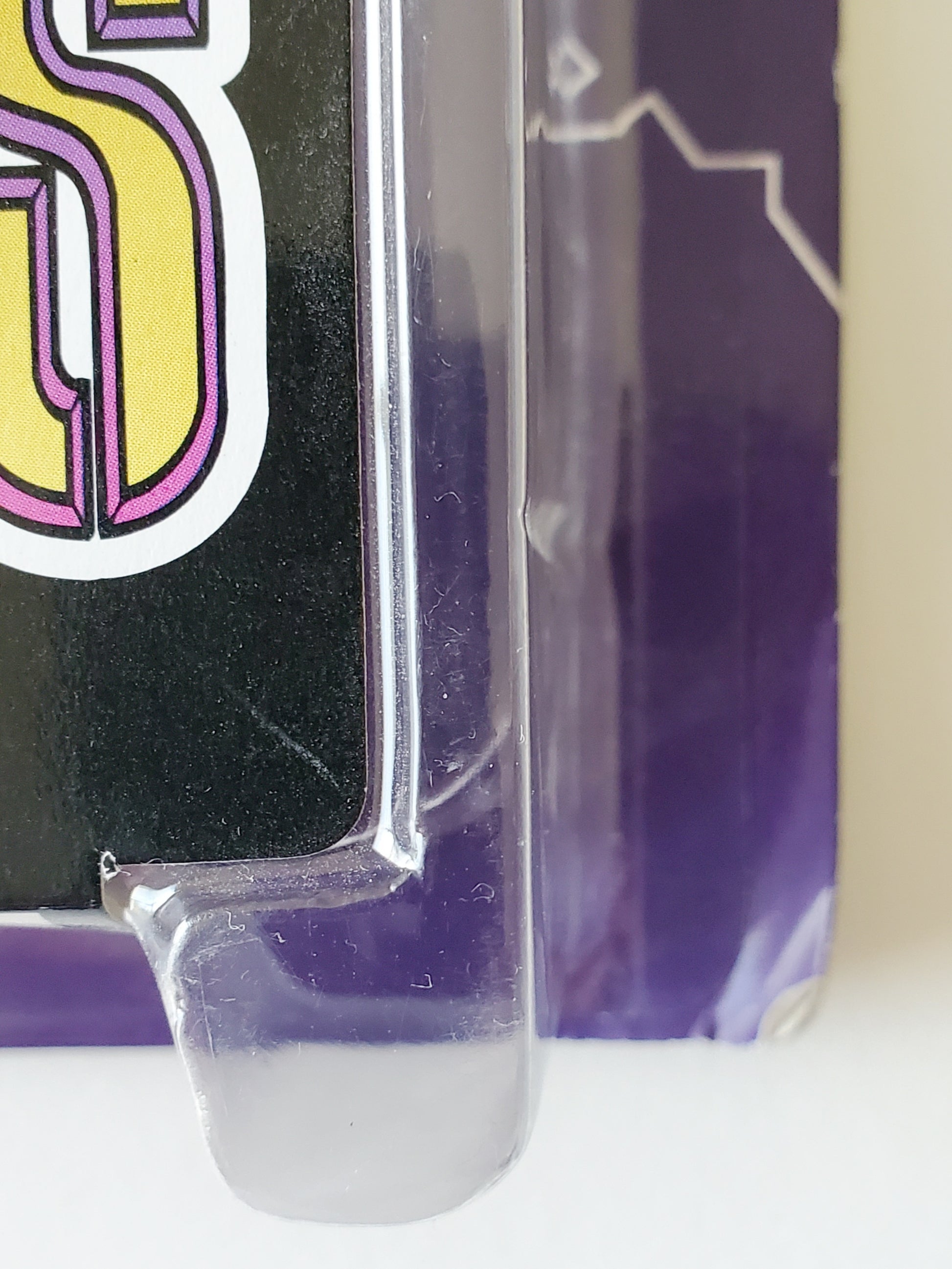 This figure is new in a package with a crease on the back of the card. The blister tray is also tinted due to age.