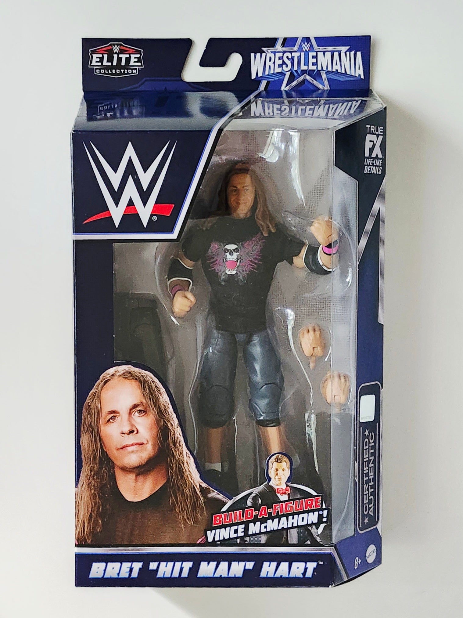 WWE Elite Wrestlemania Bret "Hit Man" Hart Action Figure and Vince McMahon Build-A-Figure Pieces, Not Mint