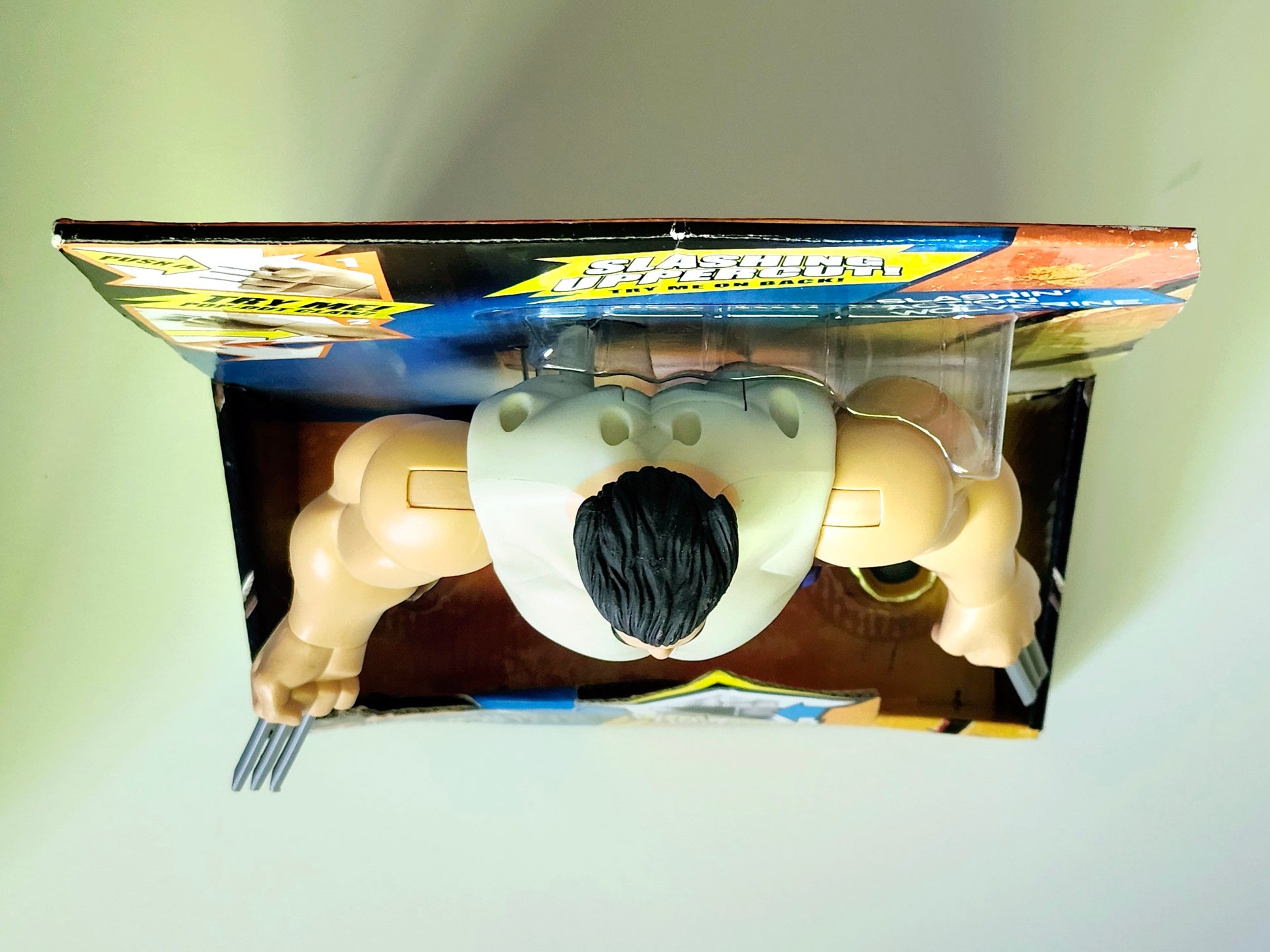 This Wolverine figure is almost ten inches tall and poseable. The figure features pop-out claws, a twist and release attack, slashing sounds. It also speaks several phrases when the button on the belt is pressed.